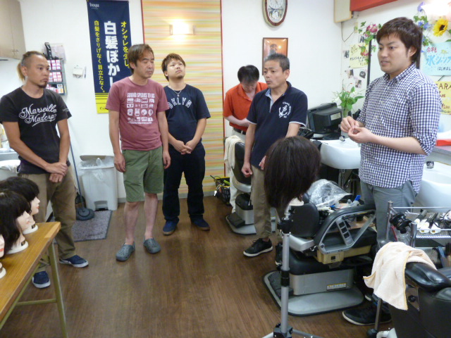 dhk富山支局(清水茂幸支局長)では、7月11日(月)、JR高岡駅近くの当会員店舗にて、dhk東京本部講師、根本高志先生を迎えて「アイロンパーマ中級編、コテウエーブ、元巻きアイロン実習」と題して講習を行った。